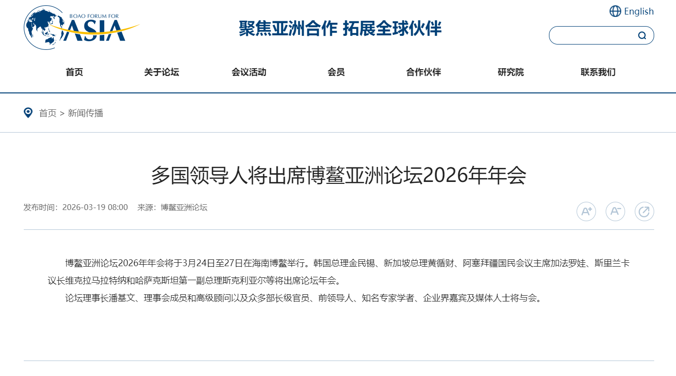 - [国际]多国领导人将出席博鳌亚洲论坛2026年年会