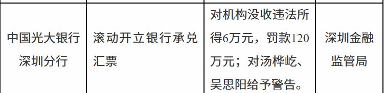 - [财经]中国光大银行深圳分行因滚动开立银行承兑汇票被罚款120万元