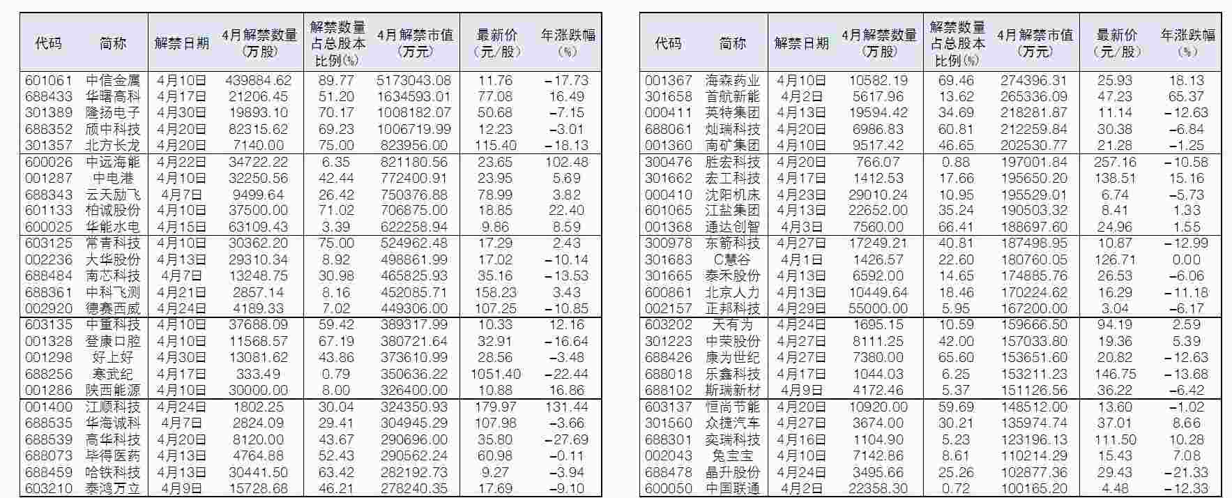 - [财经]52股4月解禁市值逾10亿元