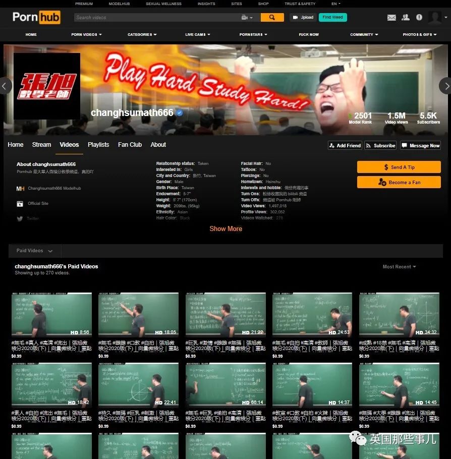 | 来源:英国那些事儿 哪里是教微积分最好的地方? 对来自中国台湾省的数学老师张旭来说, 不是个人网站、不是油管、不是在线辅导课,也不是线下补课班,而是,Pornhub。 ![]() 在这个全球知名的se情网站上,赵旭老师穿着朴素的卫衣,戴着粗黑框眼镜,讲了226堂微积分课, 时不时让午夜寂寞的人们后脊一凉,重温当年被数学支配的恐惧。 ![]() 张旭今年34岁,是一个资深的数学老师,拥有数学硕士学位。 从2015年起,张旭就在网上和线下补习班授课,主要教大学的微积分。 在脸书上,他收到500多条正面评价,学生们都说他是个好老师,知识点讲得很清楚。 ![]() 可是,张旭的生源并不是很多,这让他颇为苦恼。 他有自己的个人网站,在油管上也建了教学频道,前者没有流量,后者难以吸引流量,因为平台上的竞争者已经太多。 ![]() 怎样才可以让自己的视频被更多人看到呢? 去年,他灵机一动,想到把教学视频传到Pornhub上。 “我是这么想的,se情网站上有很多用户,但是很少有人在上面教数学。 我觉得,如果我上传数学视频,会有很多人注意到。”张旭告诉媒体。 ![]() 这话确实不错,从封面图上就可以看出,他的视频简直是鹤立鸡群,一枝独秀。 ![]() 但早期,为了吸引观众,他还是下了一番苦功夫,努力融入平台的氛围。 比如,在介绍页面,和其他片子的演员一样, 他详细地写上自己的种族、身高、体重,以及…… 咳咳,尺寸。 ![]() 在xing趣栏,他说, 能勾起他xing趣的是“粉丝收藏我的bilibili频道”, 会浇灭他xing趣的是“频道被Pornhub删除”。 ![]() 在视频标题上,张旭老师也花了很多心思。毕竟,没人会在Pornhub上搜索“微积分”、“大一数学”, 他必须添加用户平时常用的标签,才能让视频被看到。 他写的标题,耿直中带着点微妙感。 《真人#高清#流出 张旭微积分2020版(下)》 嗯,说得完全没有错, 确实是真人,他也没有露出毛(头发不算)…… ![]() 《#教室#研究生#教授#上课 张旭微积分》 虽然都是普通名词,但放在Pornhub上,就让人感觉哪里不太对…… ![]() 《#研究生#高清无码#素人#真人#刺激 张旭微积分》 整个教学视频确实全程无码,主角也妥妥是素人, 哇,学数学也可以很刺激…… ![]() 《#教学#无码#壮硕#眼镜 张旭微积分》 这…考虑到了小众群体的喜好…… ![]() 以及………… 你们自己看吧-。- ![]() 靠着一点点耕耘,张旭老师的激情数学频道,被越来越多的Pornhub用户看到。 一年时间,他的226个视频有了173万总播放量,主页浏览量达到40.7万。 最受欢迎的是《微分应用篇重点五:渐进线》,仅这条视频的观看量就超过13.6万,和网站上其他热门片子差不多了。 ![]() 观看量稳步上升,张旭老师最近把标题改得更正常了一点。 他告诉媒体,虽然他认为60%的观众都是来这里搞笑的,但Pornhub真的帮他找到不少新生源。 “人们对我的视频可能不感兴趣,但他们都知道在se情网站上,有我这么个教微积分的老师。” “很多想要学数学的学生,都是通过Pornhub认识我的,其中不少人买了我的网课。” ![]() 张旭说,他通过卖网课一年赚到750万新台币(约172万人民币),不光养活自己,还请了好几个员工运营频道。 他还想拓展出去,把视频上传到其他成人网站,比如Xvideos和XNXX,但他发现: “这些平台知道哪些视频是成人内容,哪些不是,不是成人内容的话上传后就会被禁止。” 因此,Pornhub成为了他最坚实的教学基地。 ![]() 在评论区里,大多数寂寞的灵魂对数学视频的态度是友善的。 “这是真正的硬核数学,我今天才认识。” ![]() “谢谢你的数学课,虽然我一个字都听不懂,但我觉得学了很多。” ![]() “太棒了,没有哪个东西会像数学那样,哔你哔得那么狠。” ![]() 也有人戏称,在Pornhub上教书才是对的,因为学生们本来就聚集在这里。 “这家伙为了找学生,真是无所不用其极!” ![]() “那些需要上课的年轻人,大概都在Pornhub上看视频,而不是做他们的微积分作业。 没办法,他只好去他学生在的地方。” ![]() “比利,为什么你把门锁了?啊,你在里面看微积分讲座??” ![]() Pornhub确实是个神奇的网站, 总有人想在最不正经的地方一本正经,上传一些毫不se情的视频,人们还看得津津有味。 之前,有人上传了音乐剧《汉密尔顿》的第一幕,标题是《革命少年们享受史诗级欢愉》和《革命少年被美国政治搞脏》。 ![]() 因为侵犯版权,视频被下架,但已经有无数观众感受到宏大音乐剧的洗礼。 动画电影《蜜蜂》预告片也很受人们欢迎,这只是个普通的预告片,但有人觉得蜜蜂看上去色色的。 ![]() 洗脑梗曲鼻祖《Never Gonna Give You Up》也在Pornhub上,标题是《热辣红发男的精彩独唱》。 ![]() 除此外,Pornhub上画风清奇的还有《我的世界技巧3:教你如何建房子》。 ![]() 《如何吃西瓜》 ![]() 《热气腾腾的硬核玉米》 ![]() 《两个火辣、沉默且隐形的蕾丝情侣在地板上xx》 视频里只有地板,其他靠你自己想象。 ![]() 《坦克车托马斯的10小时视频(包含超级性感的69次喷射)》 全程是一个火车头在那里“呜呜呜”。 ![]() 虽然这些视频和平台定位不同, 但谁在长时间的激情澎湃后,不需要让灵魂和身体休息一下呢? 夜深人静,四下无声, 点开P站,学两节微积分…… 总觉得人生都得到了升华呢~ |